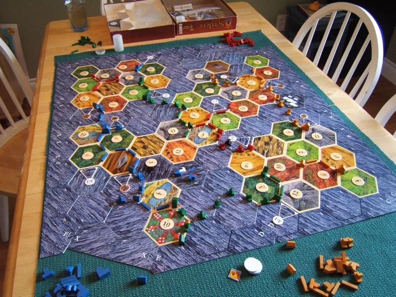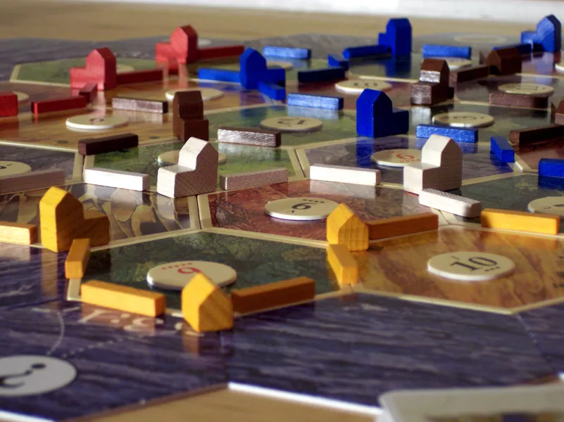 در بازی Catan (کاتان) که پیشتر با نام The Settlers of Catan شناخته میشد، بازیکنان تلاش میکنند تا با ساخت روستاها، شهرها و جادهها، به قدرت برتر در جزیرهی کاتان تبدیل شوند.