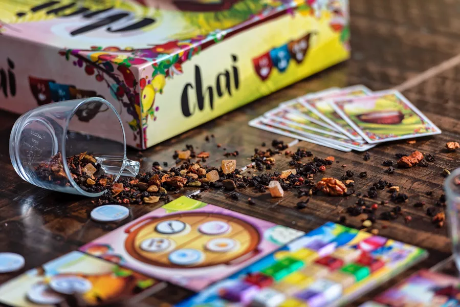 در بازی Chai (چای)، شما در نقش یک تاجر چای قرار میگیرید که باید با ترکیب طعمهای مختلف، مخلوطی بینقص از چای بسازد. هر بازیکن در یکی از انواع چای مثل روبوس (rooibos)، سبز (green)، اولانگ (oolong)، سیاه (black) یا سفید (white) تخصص دارد و باید مواد لازم را خریداری و جمعآوری کند تا سفارش مشتریان خود را انجام دهد.
