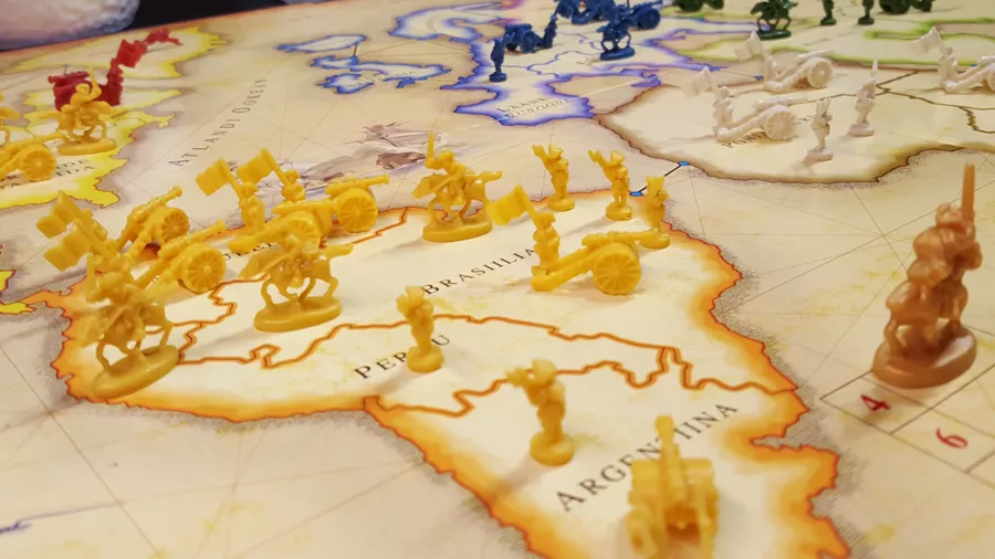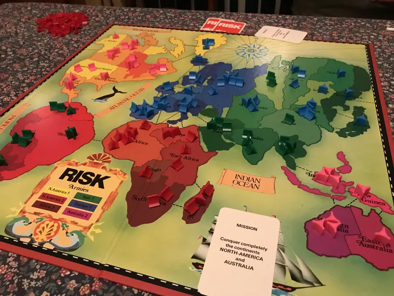احتمالاً محبوبترین بازی جنگی در میان عموم مردم، Risk است — هدف در این بازی، تسلط بر تمام جهان است.