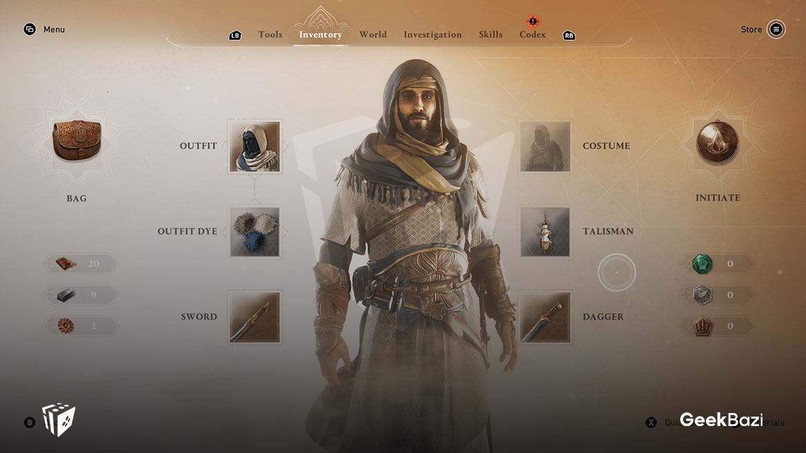 همانند قهرمانان قبلی Assassin، شخصیت اصلی، Basim، زرادخانه بزرگی از سلاحها و ابزارها، ازجمله Assassin Hidden Blade، بمبهای دودزا، پرتاب چاقو و دارت های سمی را در اختیار دارد. هم اسلحهها و هم ابزارها را میتوان از طریق درخت مهارت ارتقا داد که اجازه میدهد تا جلوههای مختلفی روی آنها اعمال شود.