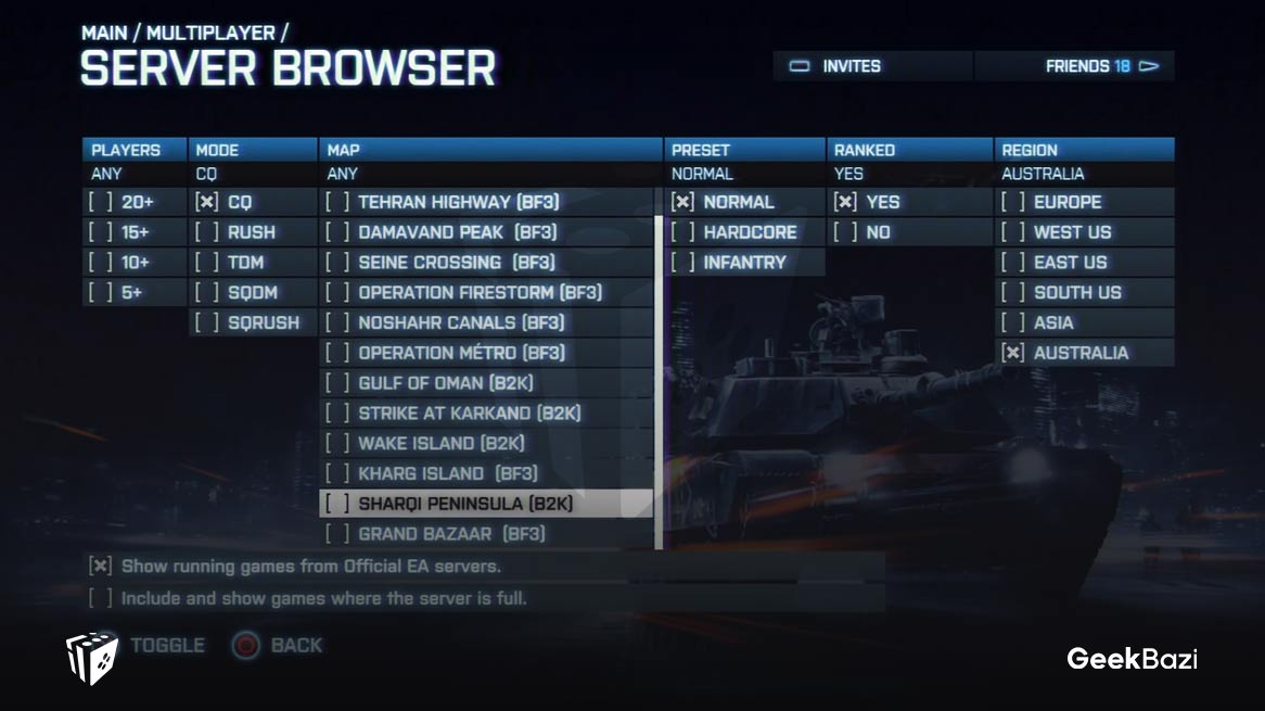این بازی را Battlelog نیز معرفی کرد؛ یک پلتفرم در اینترنت که بهعنوان مرکزی برای بازیکنان برای دسترسی به آمارها و رتبه خود، ارتباط با دوستان و پیوستن به بازیهای چندنفره طراحیشده است.
