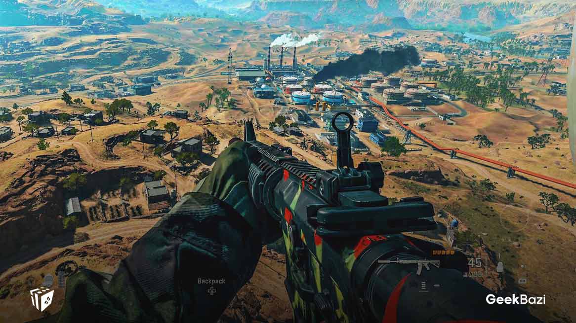 در شروع هر مسابقه، بازیکنان با چتر نجات بر روی نقشه گسترده Verdansk فرود میآیند و نقطه فرود خود را بهصورت استراتژیک انتخاب میکنند. زمانی که روی زمین میرسند، به دنبال سلاح، تجهیزات و منابع میگردند تا نسبت به حریفان برتری پیدا کنند.